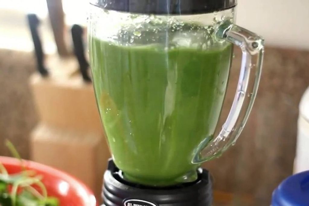 Sau khi rau má đã ráo nước, bạn cho vào máy xay sinh tố. Thêm khoảng 300ml nước lọc vào máy và tiến hành xay nhuyễn. Bạn nên xay kỹ để lấy hết phần dưỡng chất từ rau má. Sau đó, dùng rây hoặc túi lọc để lọc lấy phần nước rau má, bỏ đi phần bã.